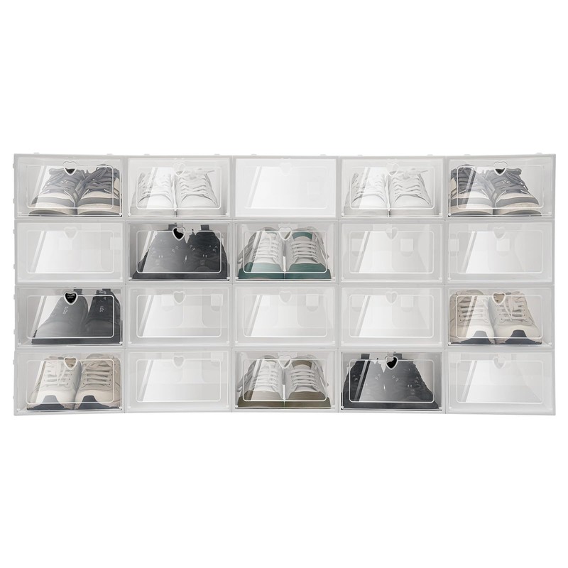 - Powerful Storage Capacity: The combination of 20 shoe organizers can meet almost all your shoe storage needs. Besides, it can also store a large number of living and learning items to lighten the load of your cabinet. Placing boards on top of the stacked boxes can also hold keys and other miscellaneous items.
