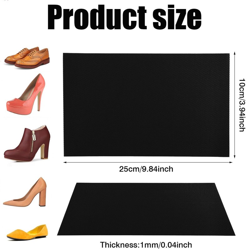 - Easy To Use:The sole protector for heels is easy to use. First of all, you need to clean the sole, then cut out a suitable size of the non-slip pads for shoes according to the shape of the sole, tear out the bottom paper, slowly suit it on the sole, press for a while, and discharge excess air.