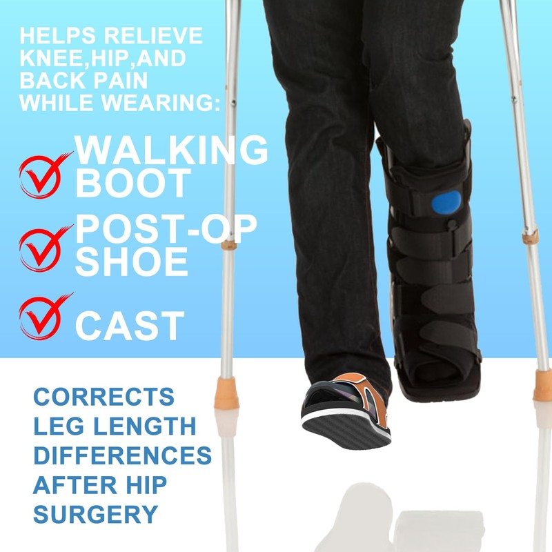 - How Shoe lift/Shoe Leveler Works - While leg in cast or wearing a walking boot, there will be a height difference between the foot with the orthosis and your uninjured foot. Our shoe leveler significantly improve the imbalance of limbs while leg in a cast or wearing walking boot.