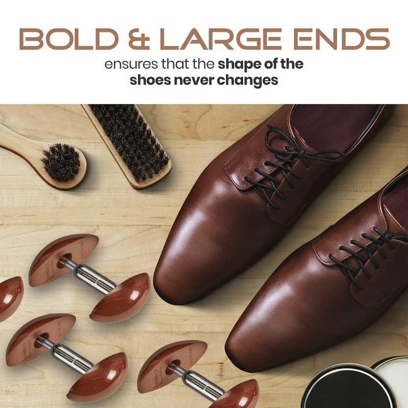Shoe Stretcher Total of 4 Stretchers, Shape Extenders and Width Extender for Men's & Women's Shoes or Boots, 2 Pairs, Brown
