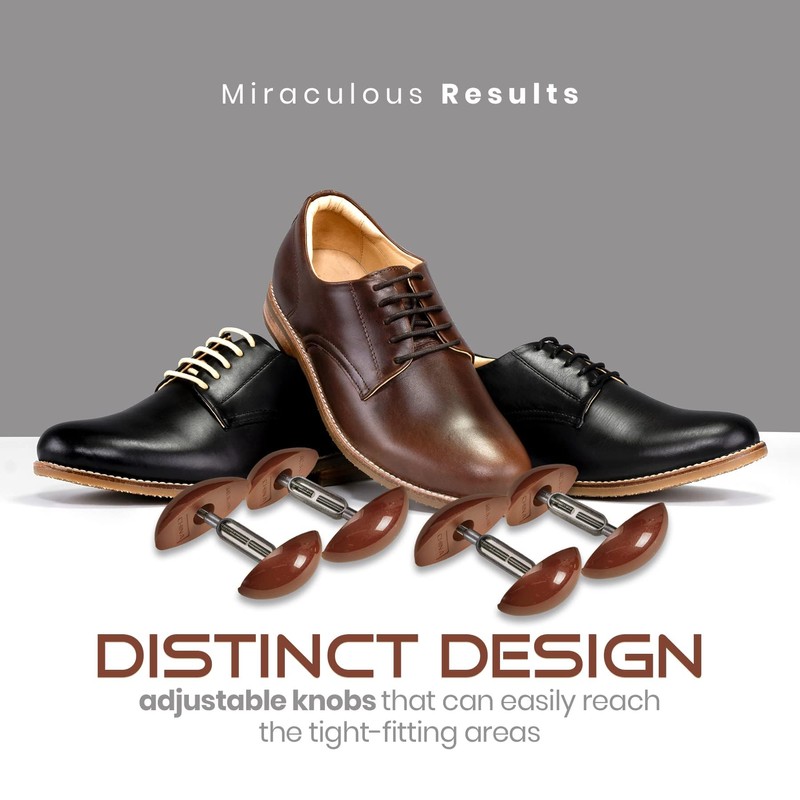 The shoe stretcher has a very distinct design. It has adjustable knobs that can easily reach the tight-fitting areas. You must have noticed using other expanders would totally change the shoe's appearance, but our expander has bold and large ends, which ensures that the shape of the shoes never changes.