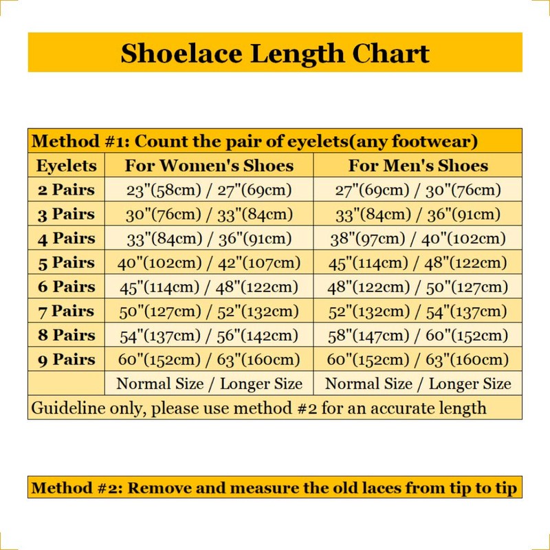 - How to get the exact length: measuring the original shoelaces from tip to tip, or check the Image 6