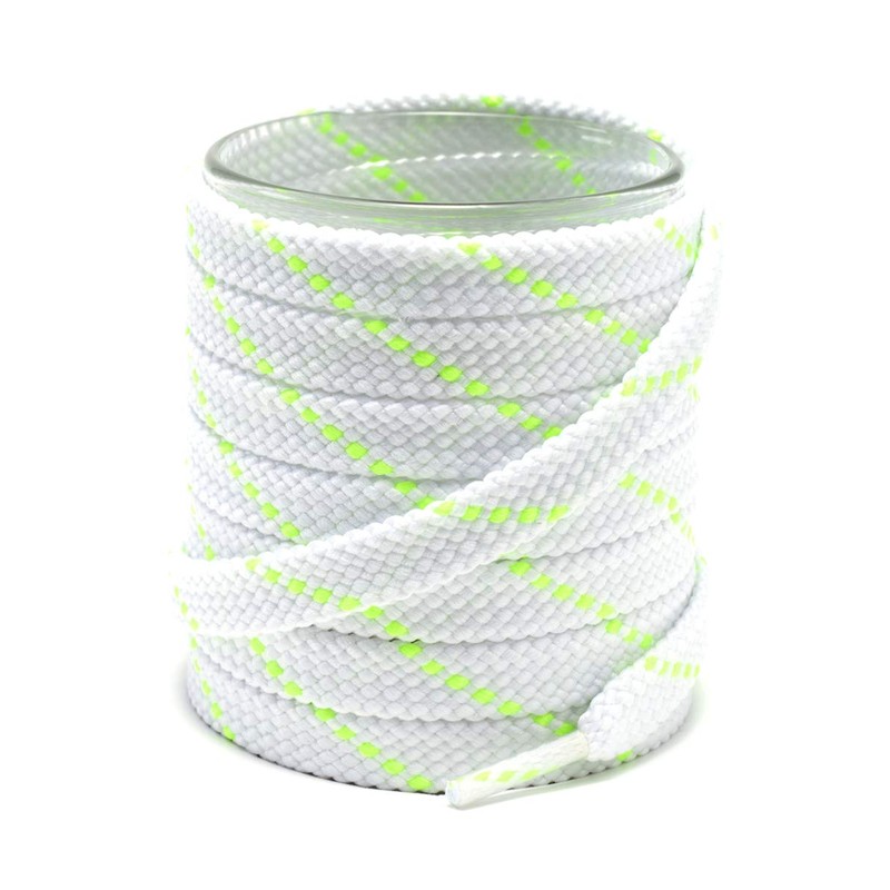 Shoemate Stylish Thick Flat 5/16" Shoe Laces for Sneakers and Athletic Shoes, Shoe Strings, White/Neon Green, 30"(76cm) 8-BaiLv ODF-76-8
