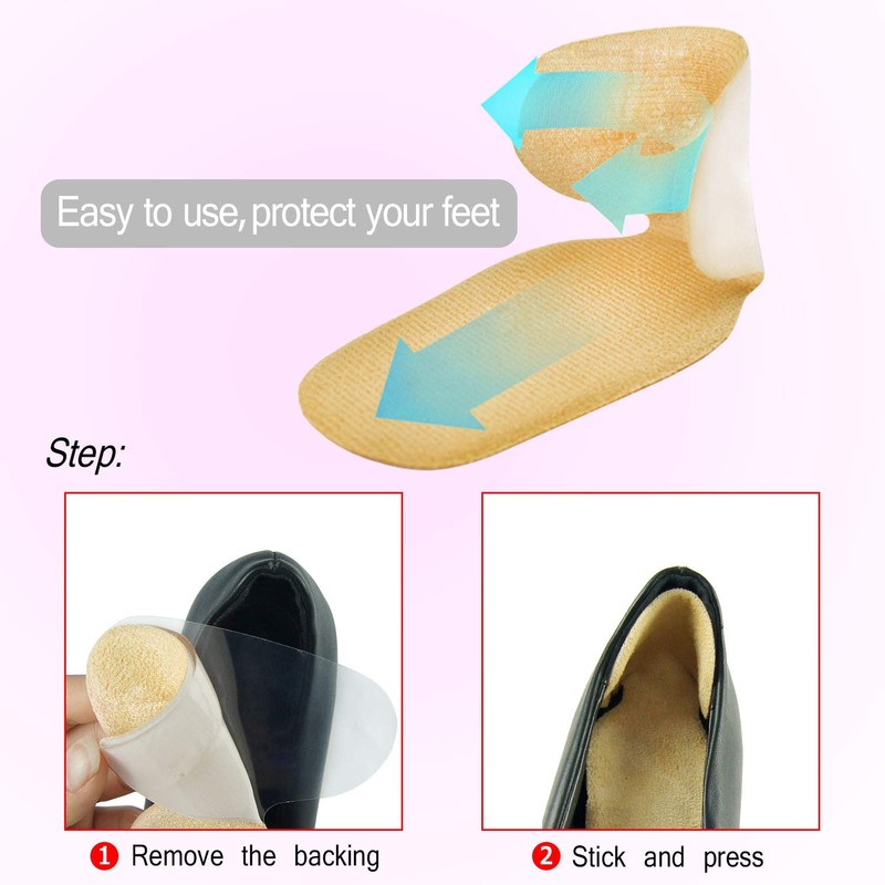 - 2-in-1 T-shape design for heel and heel pads: suitable for too large shoes to prevent falling off with strong adhesive force. Suitable for high heels to prevent heels scratching and blisters.