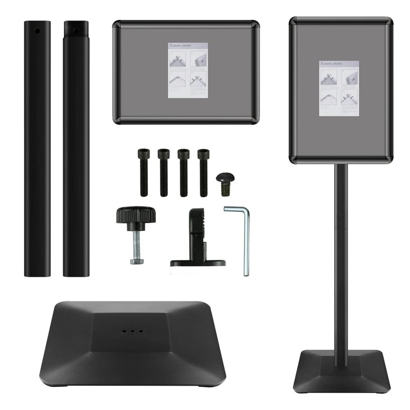 - Quick and Easy Poster Changes for Versatile Use - Our front-loading snap frame makes changing posters a breeze. The durable metal material and floor-standing design make this sign holder ideal for use in exhibitions, showrooms, restaurants, supermarkets, shopping malls, and more.