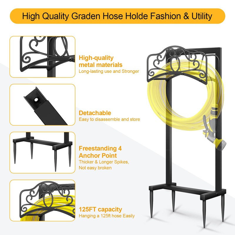 - Detachable & Freestanding: This is a detachable,freestanding hose hanger that is very convenient for daily use.Unlike wall-mounted hose hangers, This water hose holder can be placed and move easily. And it's also easy to disassemble and space-saving when you do not need it.