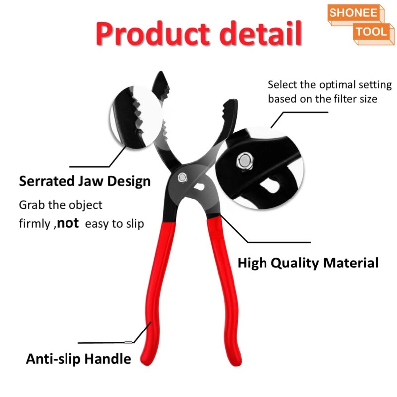 - Multi Function: Shonee 12" universal pliers can be used on objects with a diameter from 2-3/8 to 4-1/2 inches (60 to 102 millimeters) ,such as oil filters, conduit, fittings and more.