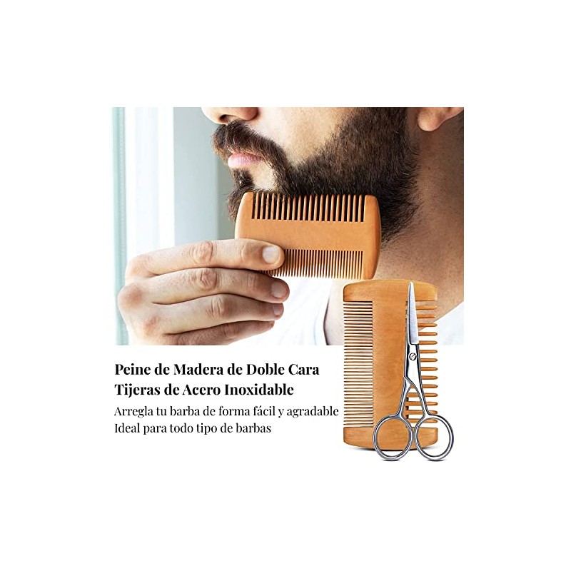 Shoonlo Barba Kit Cuidado, 8 en 1 Kit Barba Hombre con Rodillo para Barba, Cepillo, Aceite, Peine, Champu, Balsamo, Tijera, Bolsa de Arpillera -...
