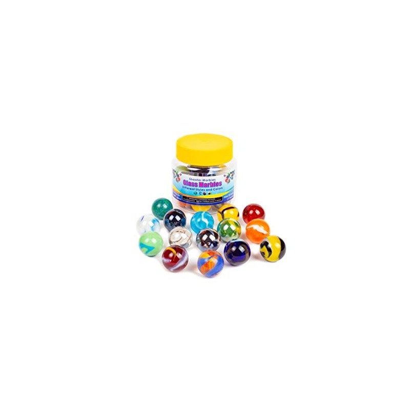 Shooter Glass Marbles Bundle, Pack of 15, 1 inch, with Practical Container