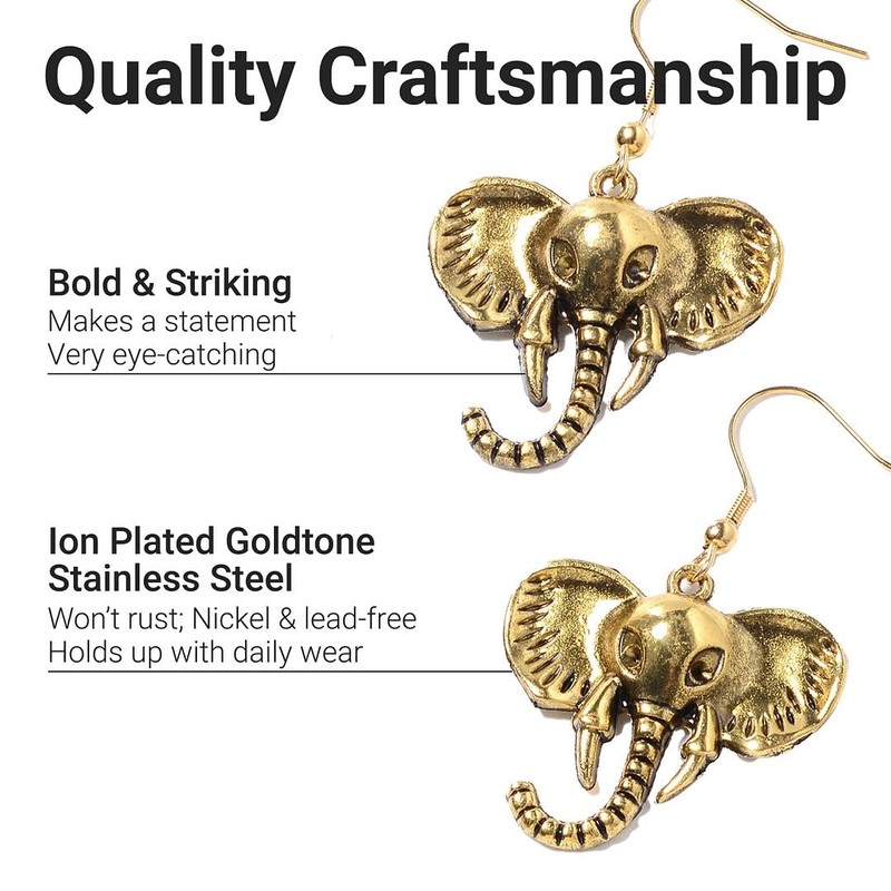 SHOP LC DELIVERING JOY Elephant Earrings & Necklace Set - Jewelry Birthday Gifts for Women - Chunky Statement Jewelry Set in ION Plated Yellow Gold - 16" Necklace Length
