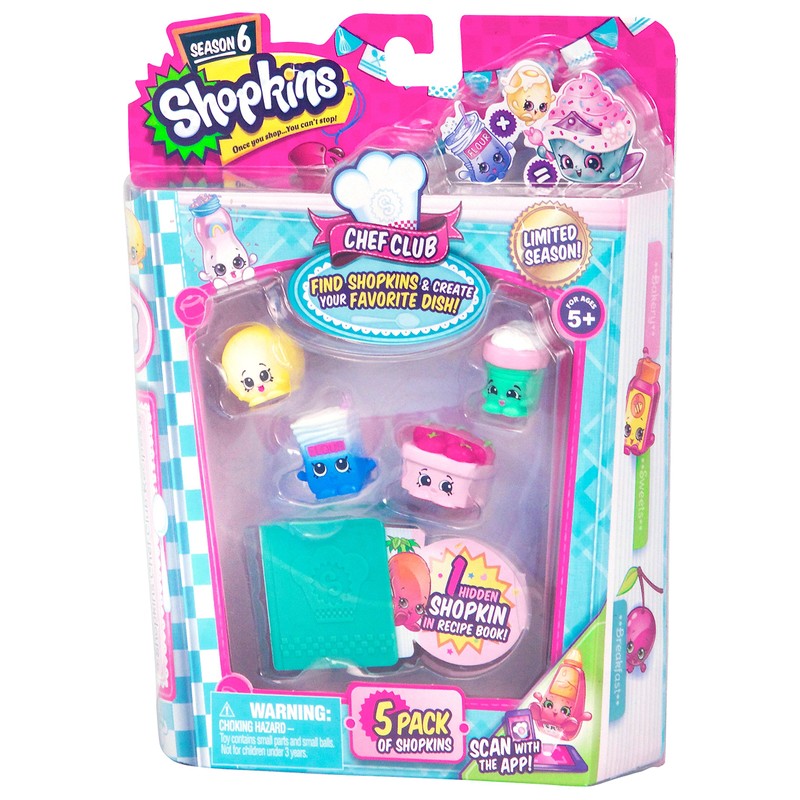 Come over to the cutest kitchen in town and see what's cooking at the Chef's Club! This season each Shopkin is an ingredient in a deliciously fun recipe! Collect all the ingredients and search for the Limited Edition "Finished Dishes"! There are Breakfast meals to make, sweet things to bake, Family foods to prepare and baked goods to share! The 5 pack comes with 1 Shopkin hidden inside a cute cook book! Will you find a "Limited Edition" Dish? This season each Chef Club Shopkin has a scanable code on it to access a cute Shopkins App! Scan all the ingredients to unlock your Limited Edition App Character.