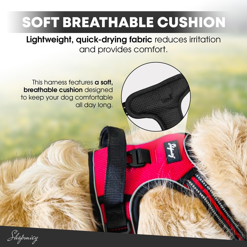 - Fully Adjustable and Comfortable: harness for medium dogs, harness for large dogs, Available in sizes suitable for small to large dogs, our fully adjustable dog harness is made to provide a snug and comfortable fit. The soft padded dog harness ensures your dog's comfort, making long walks an enjoyable experience. Say goodbye to chafing and irritation, and hello to a happy, contented pet.