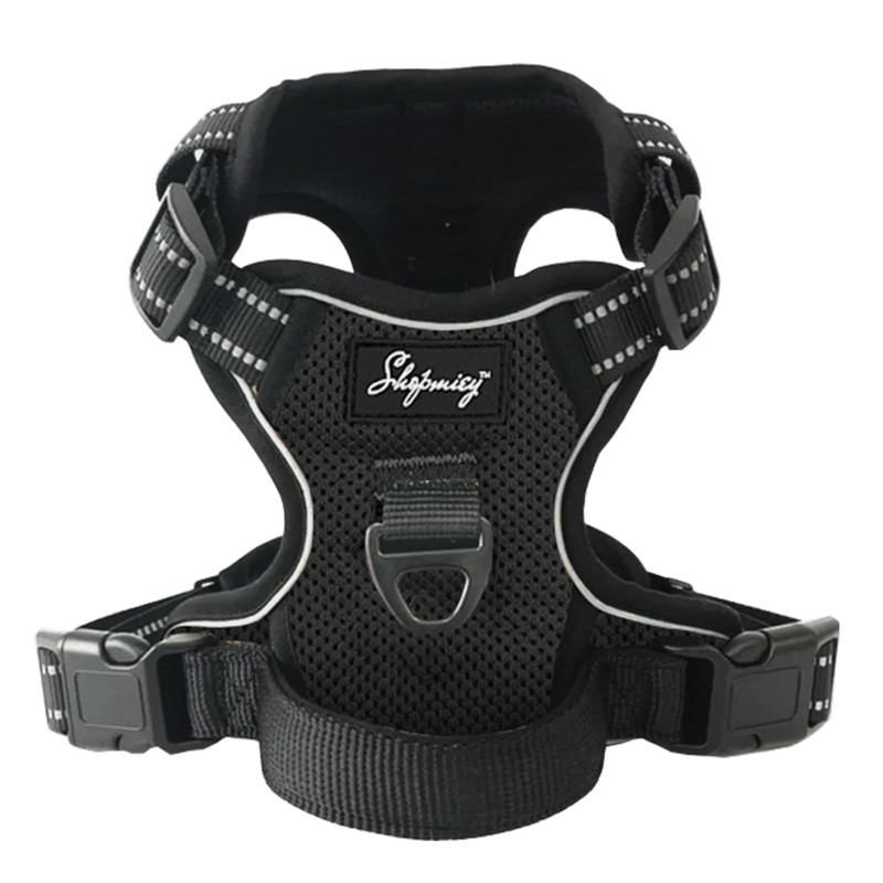 ShopMiey Dog Harness No Pull Pet Harness with 2 Leash Clips, Adjustable Soft Padded Pet Vest Harness, Reflective No-Choke with Easy Control Handle for Training or Walking (Obsidian Black, Small)