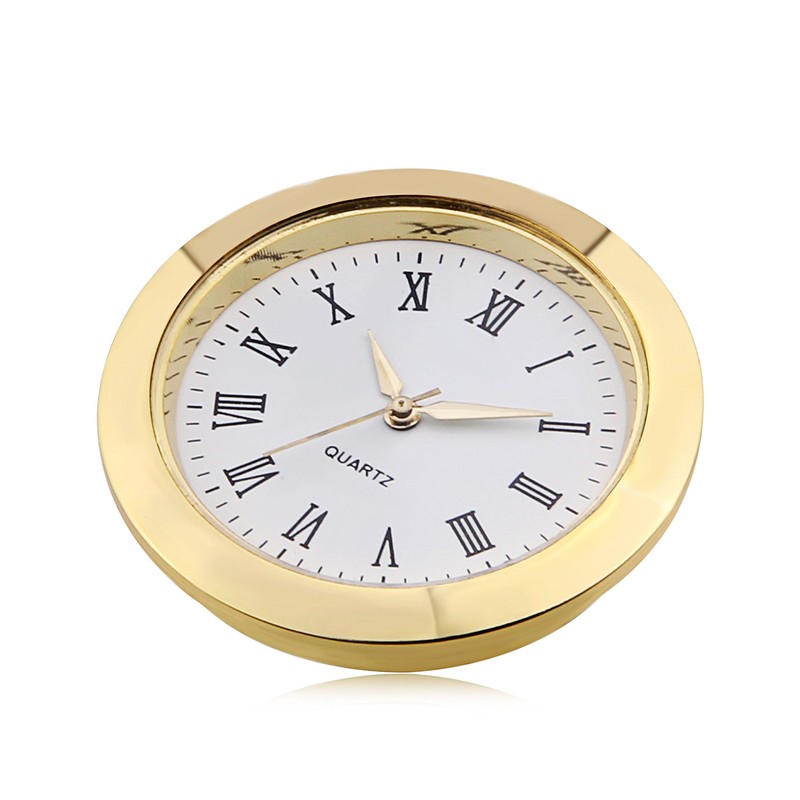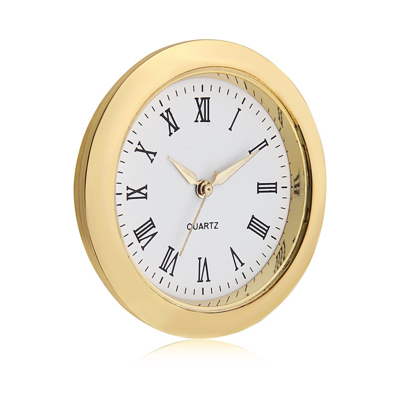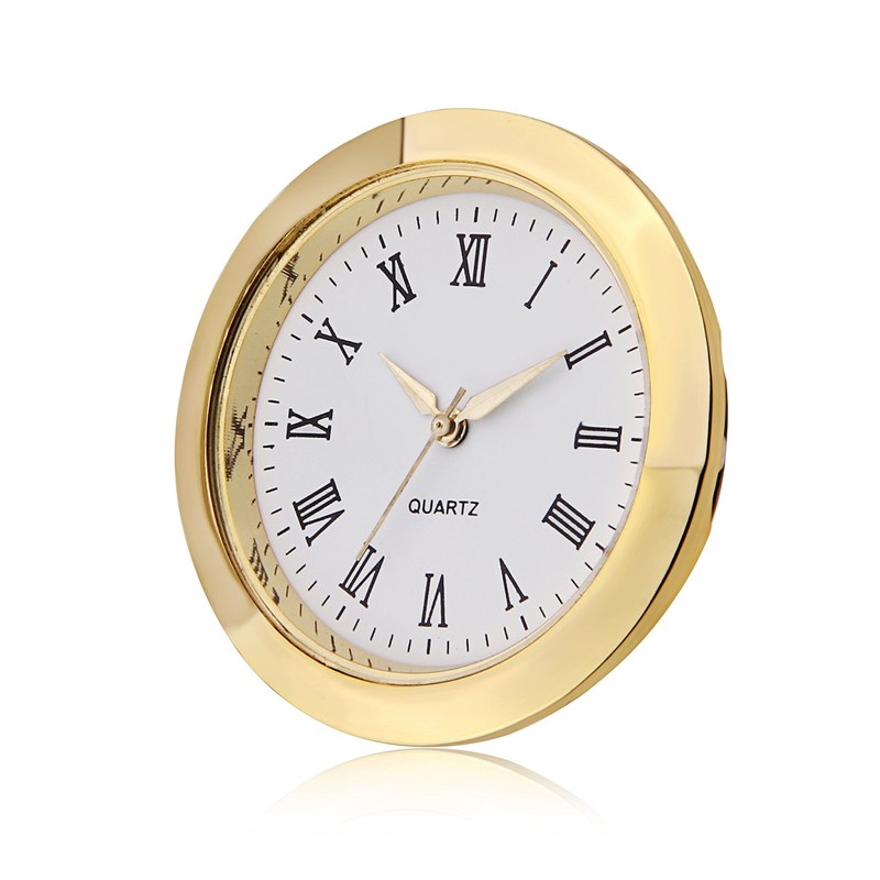 ShoppeWatch Mini Clock Insert 2 inch (55mm) Quartz Movement | Miniature Clock Face Insert | Round Fit Up White Face Gold Tone Bezel Roman Numerals CK083GD