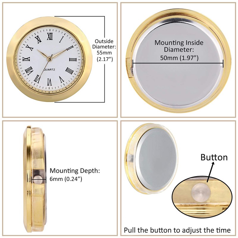 - Compact Dimensions: With an overall outside diameter of 2-1/8 inches (55mm) and a mounting depth of just 0.25 inches, this clock face insert is designed to fit seamlessly into a small glass or crystal clock.