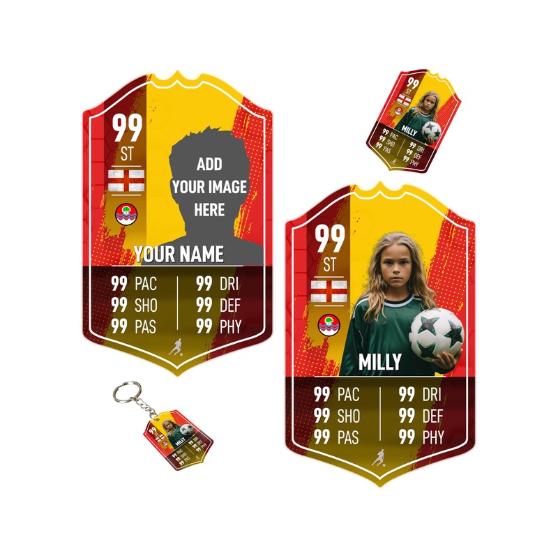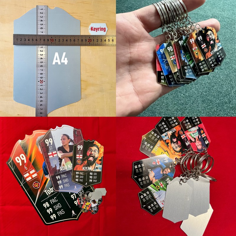 • Digital dye sublimation colour printing, Quality 0.5mm aluminium Football Player team Card Sign with your personalised picture and stats