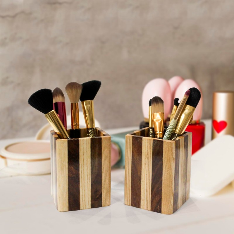 Pen Pencil Holder, Make Up Brush Stand, Desk Organizer Storage Box Wooden Office Supplies School Home Tabletop Accessories