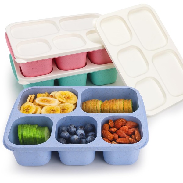 Shopwithgreen Bento Box Lunch Boxes, Snack Box Containers for Kids Adults, 5 Compartment Reusable Meal Prep Containers with Lids, 3 Pack