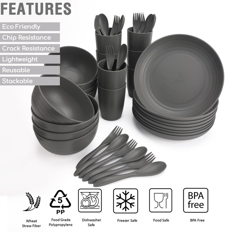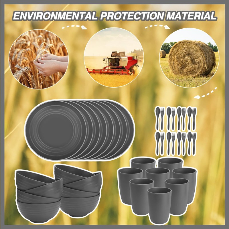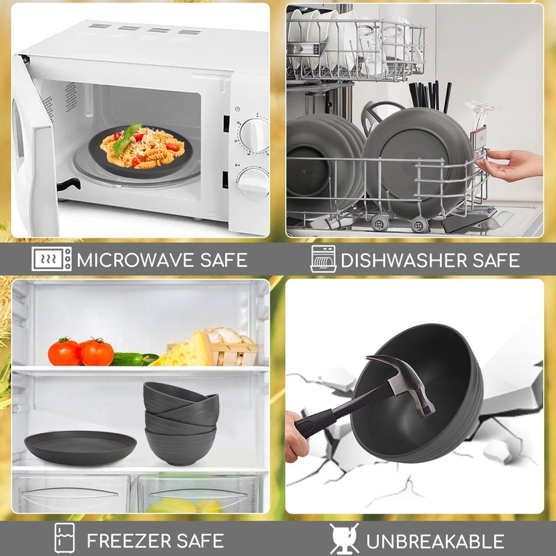- 【UNBREAKABLE DINNERWARE】Made of wheat straw fiber, BPA-free, and food-safe PP material, these wheat straw dinnerware sets are unbreakable instead of conventional dinnerware, with no worry about chips and cracks from dropping, super sturdy and durable. Light to hold and safe to use