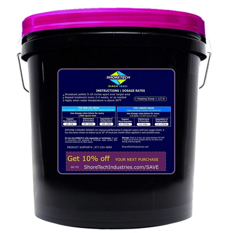- IMPROVES LAKE & POND HEALTH: ShoreTech Black Label Muck Pellets are our top tier bacteria product. They will also help reduce phosphates, amonia, toxic gas & odor in lakes and ponds of all sizes.
