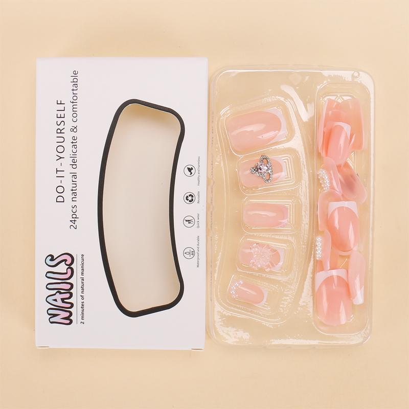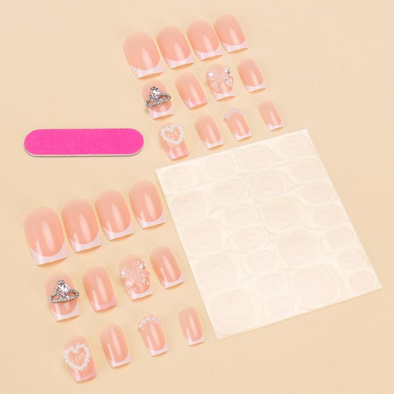 Short Ballerina Shaped Fake Nail, 24pcs/set Colorblock Fake Nail with Nail File & Tape, Removable Nail Art Artificial Full Cover, Girls DIY Manicure, Valentine's Day Gift