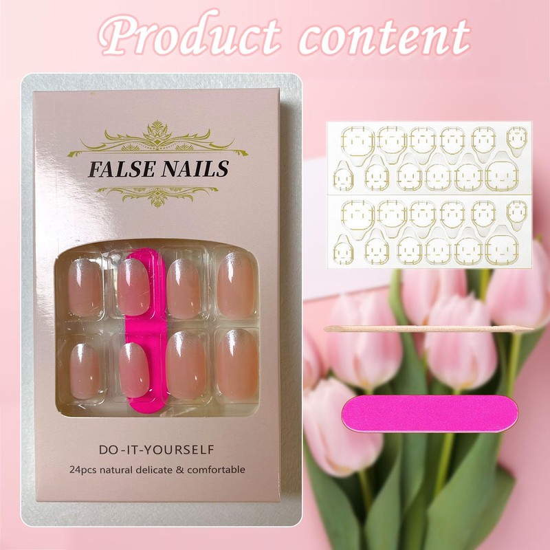 - We offer 12 different sizes of almond false nails, the product contains: 24 nail clips, a wooden stick, a nail file, a cleaning cloth and a jelly glue. Suitable for different fingers