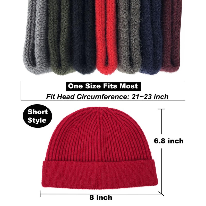 Short Fisherman Beanie for Men Women, Wool Knit Cuff Warm Winter Hats, Trawler Beanie Watch Caps Soft Skullcap Unisex, Red