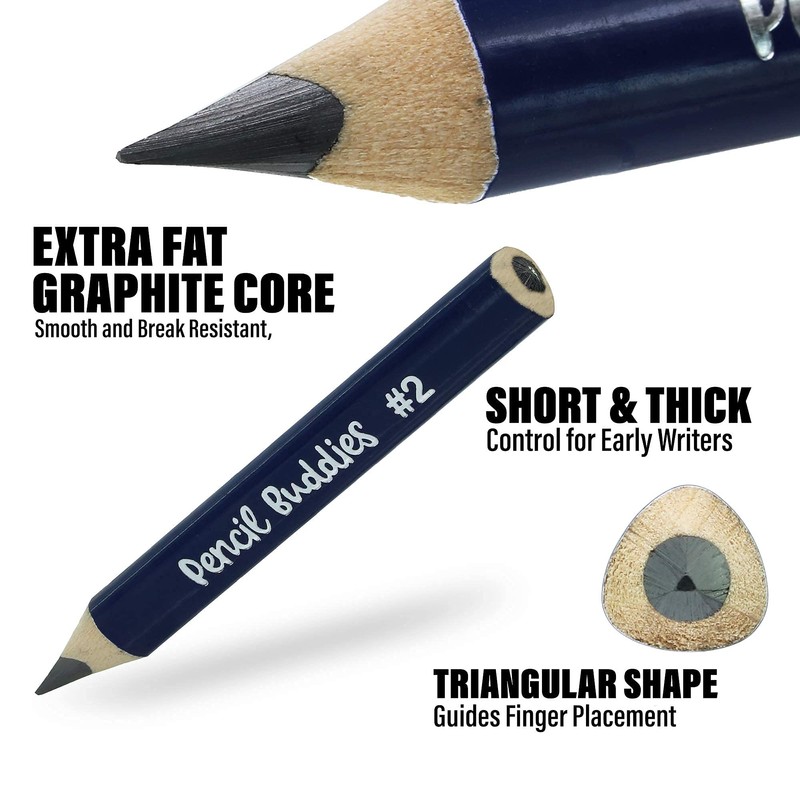 - IDEAL BEGINNER PENCILS – Designed to be easy to hold and manage for small hands, Pencil Buddies short and fat triangular pencils are perfect for early writers, preschoolers and kindergarten students learning to grip a pencil.