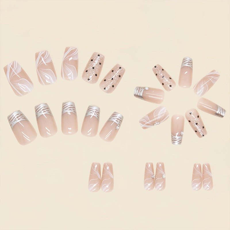 Product Type: Short Coffin NailsMaterial: ABSColor: As shown in the pictureQuantity: 24/30pcs/box Women Press on NailsHow to use?1. Gently wipe the nail plate with a nail stick to remove the surface cuticle, rinse well and keep the nails clean2. Choose the size that best suits your nails, take an appropriate amount of glue or jelly glue on the inside of the selected nail plate.3. Press the false nails on your own nails and hold for 30 seconds.4. Trim according to the shape and length of the press-on nails you want.How to remove?1. Soak the nails in warm water, and after a few minutes, gently peel off the pre-glued nails from the side.2. Tear off the glue sticker and keep the false nail tip for next use.Notice:1. Do not wet your fingers within one hour after wearing false nails.