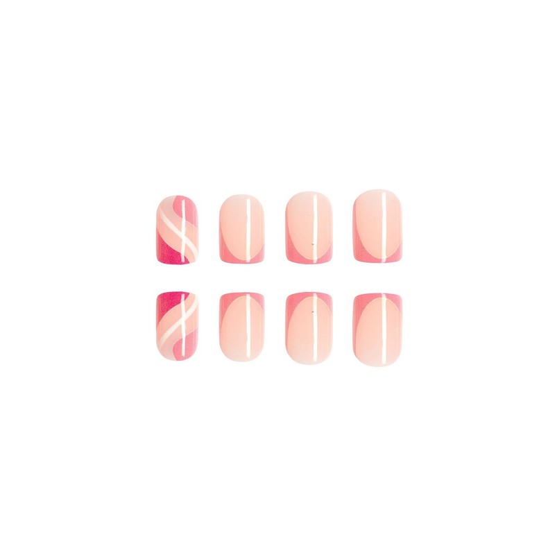 Short Press On Nails Square Fake Nails French Tip Glue On Nails With Pink Des...
