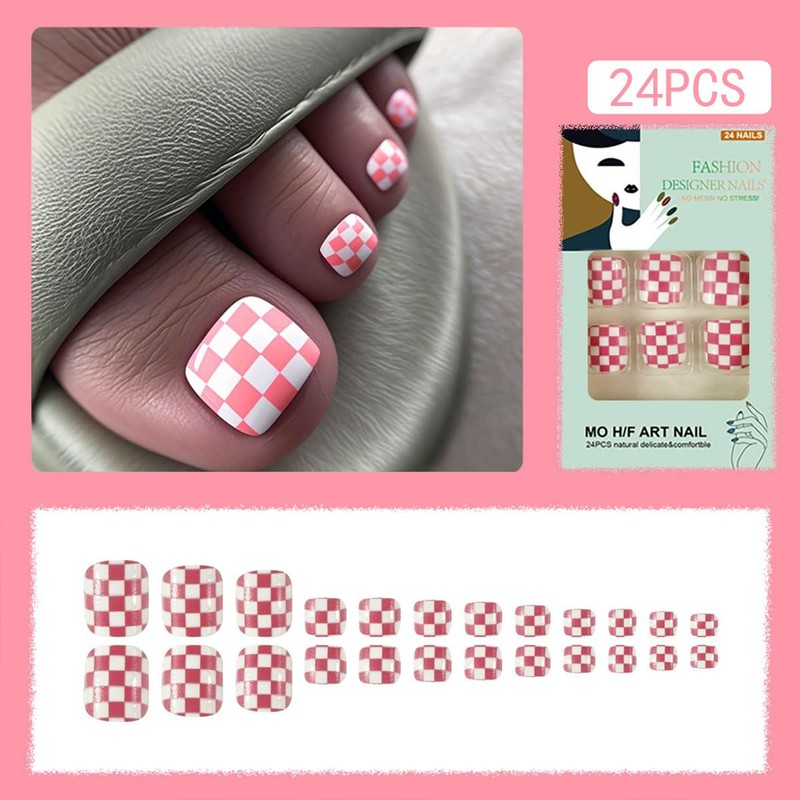 - 【Ideal Gift】: This set of cute checker acrylic false toenails makes a great gift choice. For friends who love beauty or family members who want to add some festive charm, it's a unique present