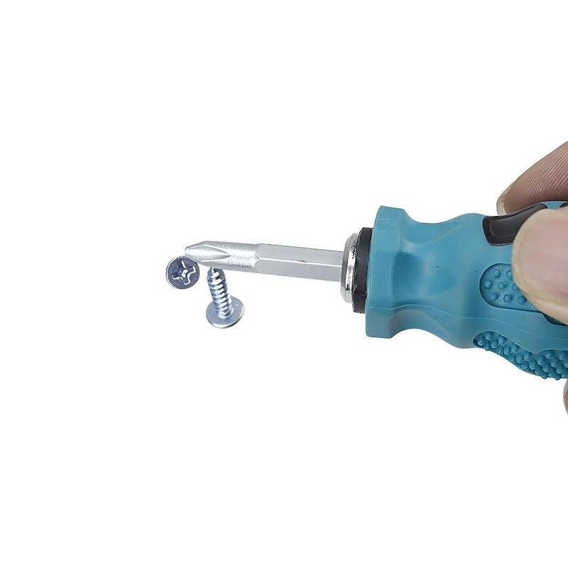 Short Slotted Phillips Screwdriver, Non-Slip Rubber Handle and 6mm Slotted PH2 Magnetic Screwdriver Bit