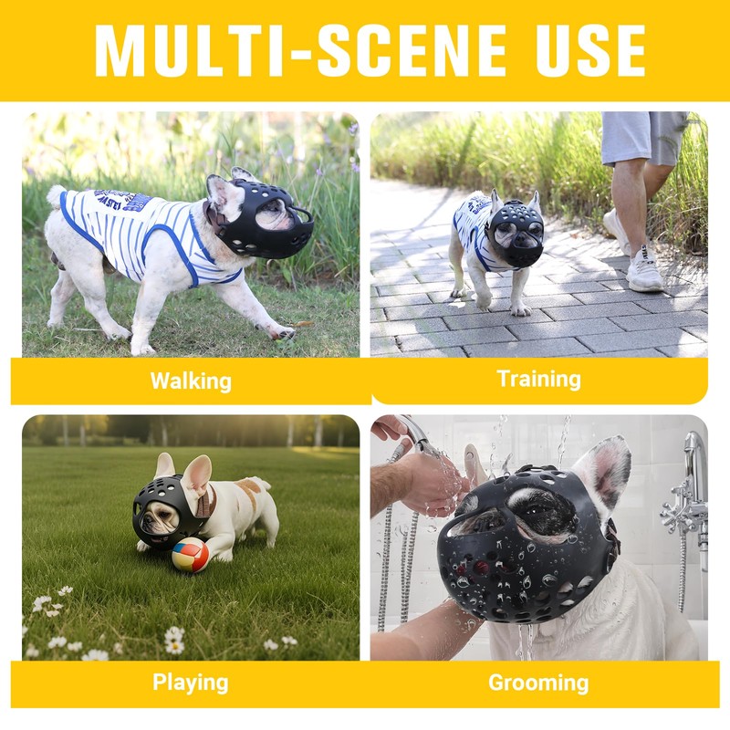 - Breathable & Panting-Friendly: Featuring a ventilated muzzle structure with multiple air holes, this short snout dog muzzle allows your pet to breathe, pant, and drink water freely while preventing biting or excessive chewing.