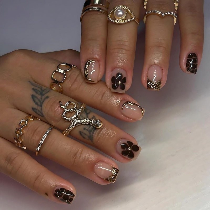 - press on nails short square gives you an instant manicure makeover. Our tortoise shell nails offer sophisticated dark brown nails designs, while our fall press on nails showcase trendy autumn motifs – both collections deliver salon-perfect fall nails at home!