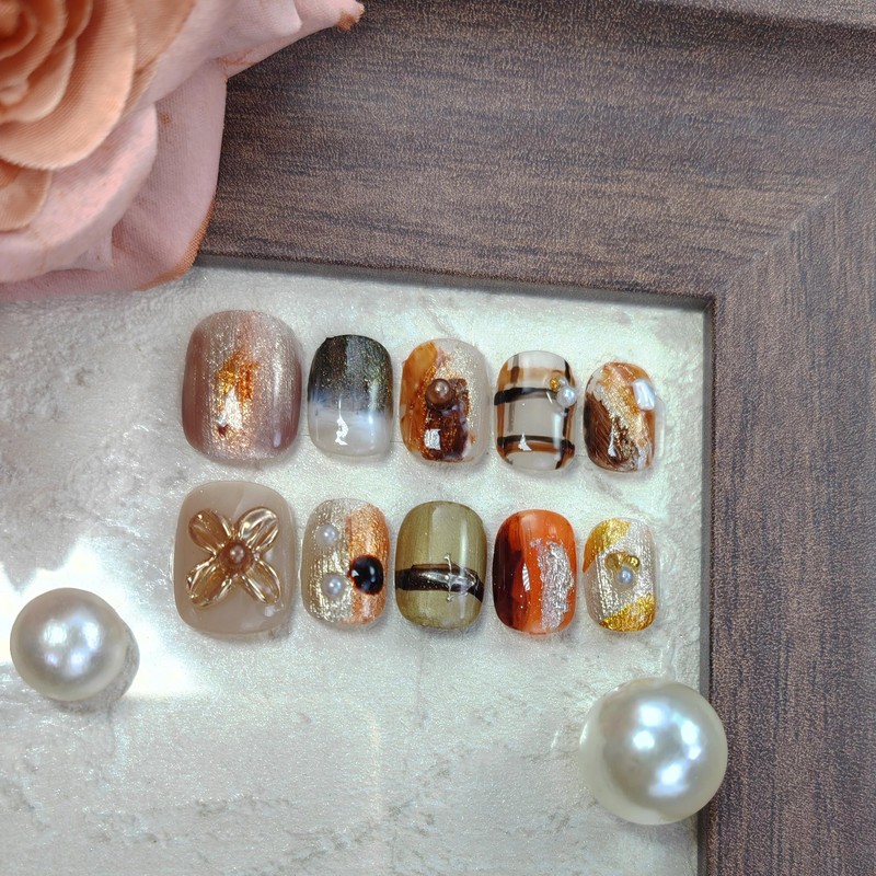 4.Some press on nails have decorations glued on them. We all glue them firmly before sending out, but please understand that they are not grown on it. What if the decoration fell off, you can use glue to stick it on. It doesn’t affect normal use. Thank you for your understanding!