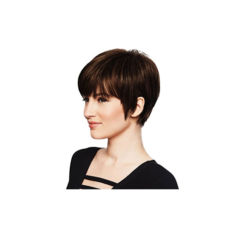 - Short Textured Pixie Cut Wig Color R10 CHESTNUT - Hairdo Wigs 5" Length Boy Cut Tapered Layers Bangs Tru2Life Heat Friendly Synthetic