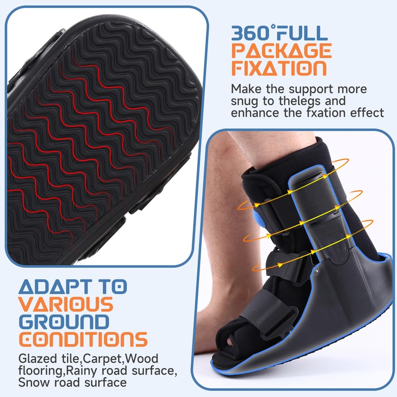 • High quality support: Made of strong and ergonomic materials, it provides strong support for the foot, ankle and lower leg. Whether it is a minor fracture or a more serious injury, it can help to stabilise the injured part, limit unnecessary activities, prevent the fracture from aggravating the injury due to inappropriate movement, and effectively assist the bones to heal in the correct position, just like building a ‘safe protective frame’ for the injured limb.