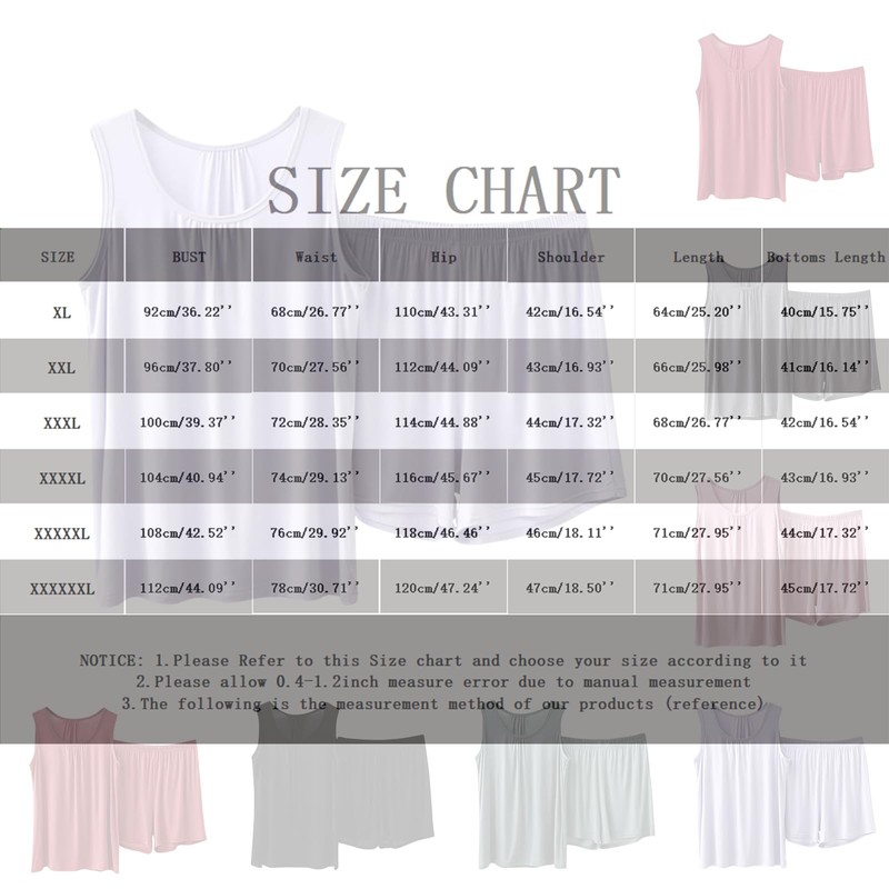 Summer Cotton Pajama Set For Women Plus Size Soft Shorts & Tank Top Sleeveless Sleepwear For Home/Travel