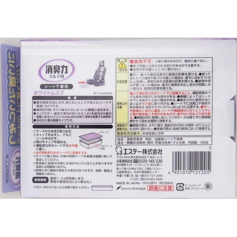 SHOSHU-RIKI Car [Bulk Purchase] For Cars, For Under The Seat, White Musk, 10.6 oz (300 g) x 2 Packs (Just Place Under The Seat), For Cars, Under The Seat, Deodorizer, Air Freshener