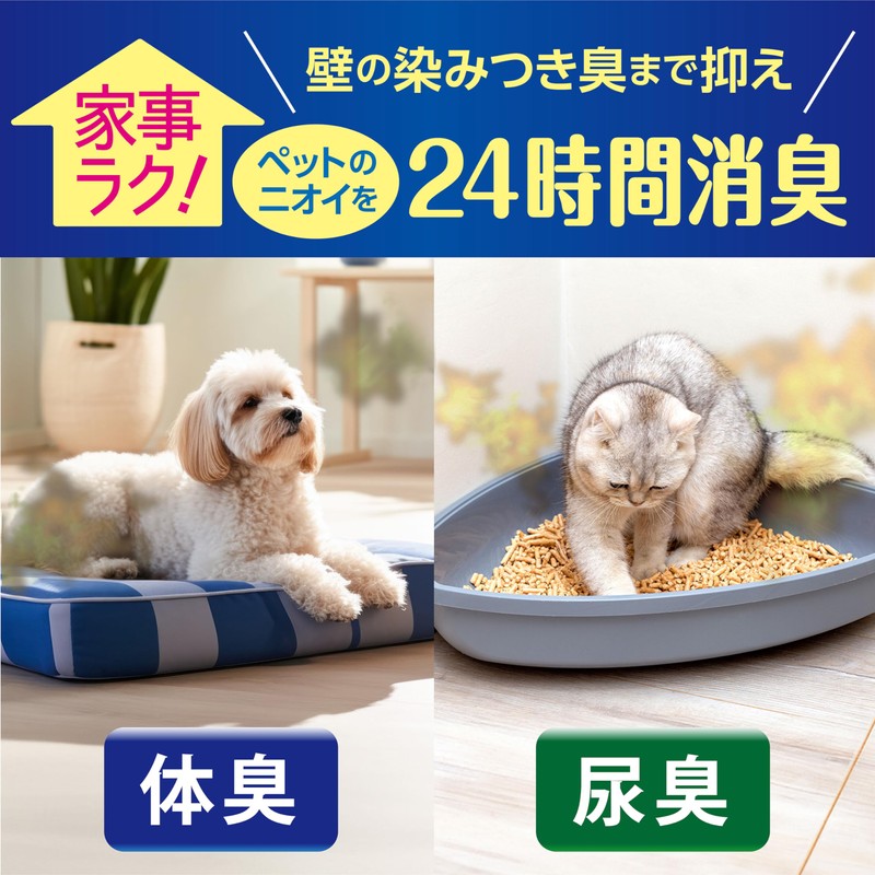 - Completely deodorizes pet body odors and toilet odors. It spreads a gentle fragrance for your pet