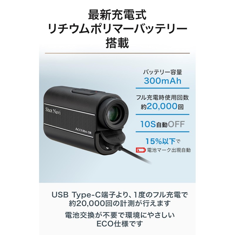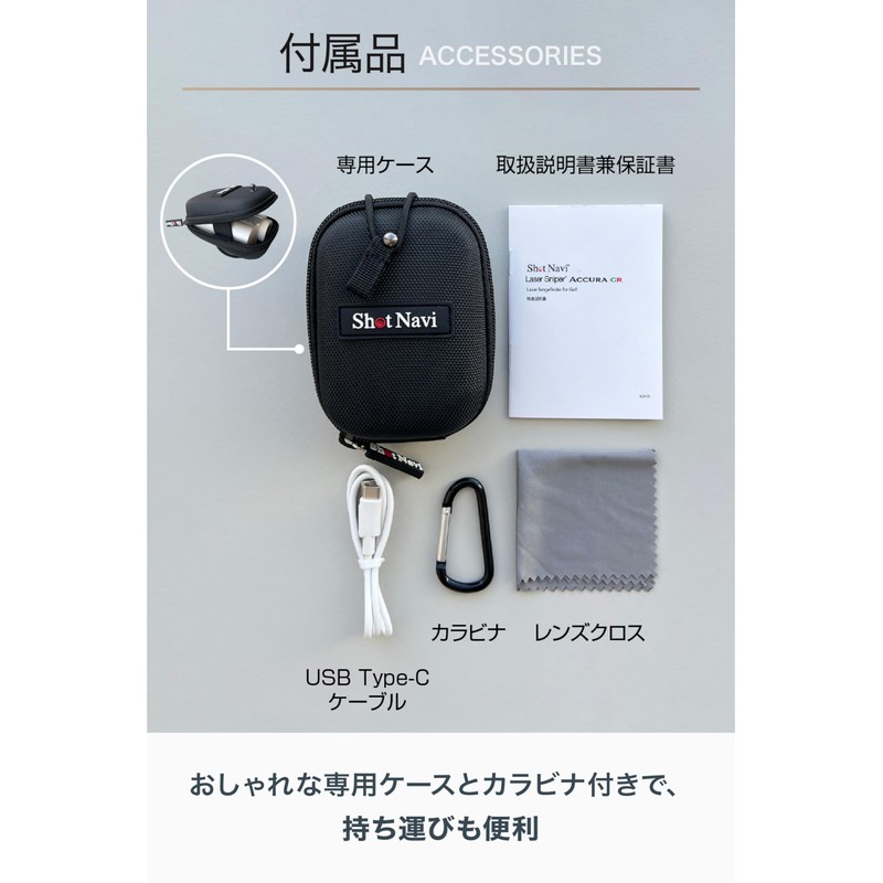 Shot Navi Golf Laser Distance Meter, ACCURA-GR White, High Speed 0.02 Second Measurement, 2 Color OLED (Green/Red), 1300y Measurement, Lightweight, 6x Zoom, Height Differential, Rechargeable, Laser
