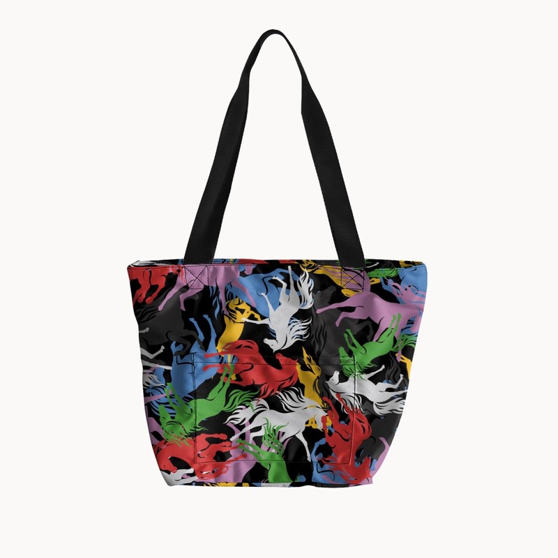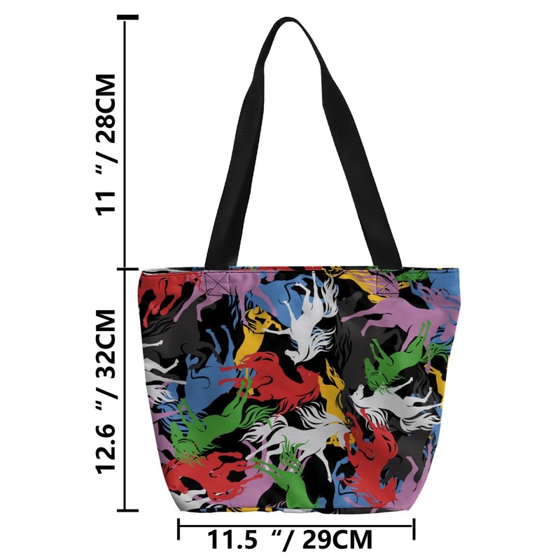 Shoulder Reusable Eco-friendly Shopping Bags Portable Storage Handbag (The horse-1, Medium)