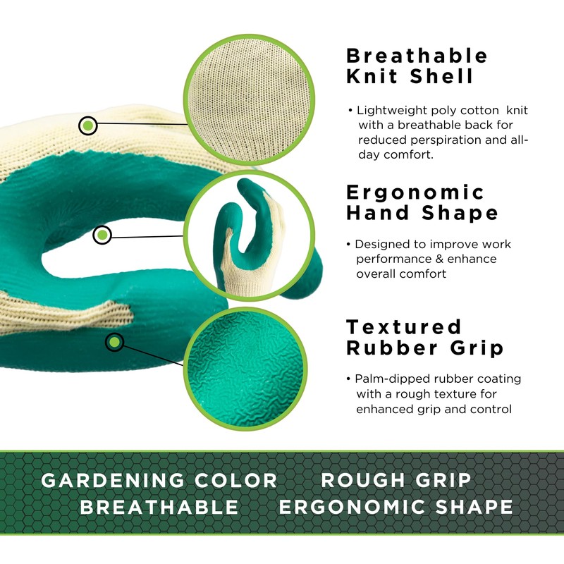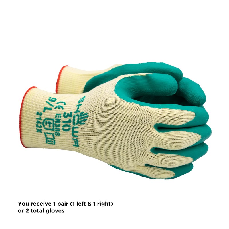 SHOWA 310 Natural Latex Palm Coated General Purpose Work Glove with Poly/Cotton Liner, Green, X-Large (1 Pair)