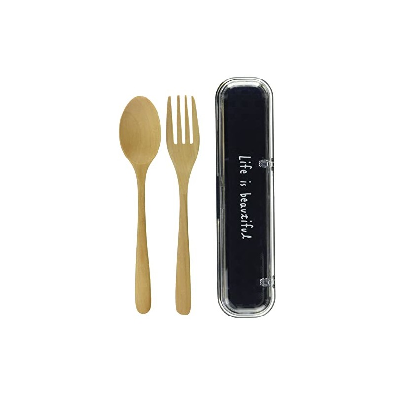 Showa 77181 Wooden Cutlery Set, Gingham Check, Navy, Case L/B