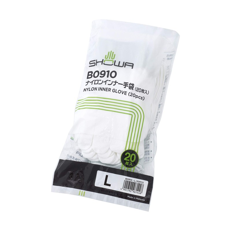 Showa Glove B0910 Nylon Inner Gloves, 20 Pieces, 1 Bag, whites