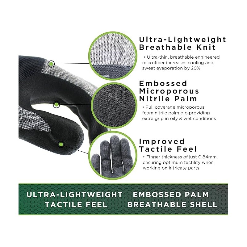 • PALM COATED: Microporous foam provides excellent abrasion and cut resistance as well as resistance to various chemical and oils. Allergy free with no latex proteins