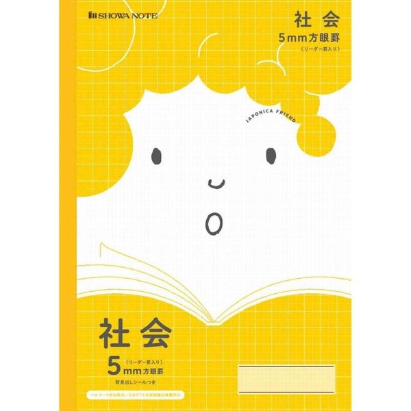 Showa Note Japonica Friend JFL-5Y Practice Book, Yellow, B5 Size, 0.2-Inch (5 mm) Grid Lines, For Social Studies (English Version Not Guaranteed)