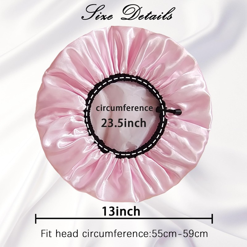 - Double-layer Waterproof Shower Cap: The shower caps for women reusable waterproof contains two layers, including a smooth silky satin outer layer and a water-resistant PEVA inner layer, which can effectively keep your hair from getting wet during showers or baths, give you a better shower experience