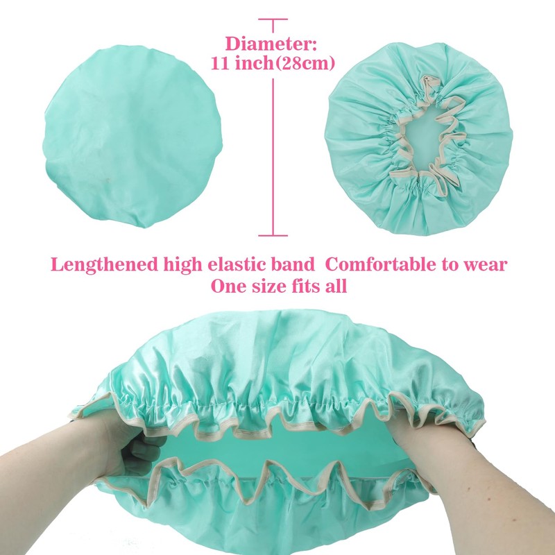 Double layer waterproof: made of a polyester outer layer and an EVA inner layer, which effectively keeps your hair dry when showering.