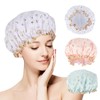 Shower Cap, Pack of 3 Reusable Double Layer Shower Cap, Waterproof Shower Cap, Soft and Smooth Satin Hair Cap, for Salon, Spa, Travel, Hotel, Shower, Kitchen
